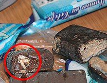 Виктор Антонович в июне текущего года купил в одном из магазинов Кызыла килограмм конфет «Мишка на Севере». Сам попробовал, щедро оделил детей и внуков. А через неделю, доедая остатки лакомства, один из родственников, похоже, желая продлить удовольствие, не сунул конфету в рот целиком, а разломил ее и неожиданно обнаружил небольшого, но достаточно резвого и упитанного червяка.