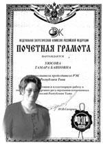 «Приказом от 26 мая 2004 года по Федеральной Энергетической Комиссии Российской Федерации за № 250-к Уюсова Т.Б. награждена Почетной грамотой, которая в тот же день была передана председателю РЭК РТ Анай-оолу М.К., находившемуся в служебной командировке в г.Москве на годовом общем собрании членов МАРЭК.