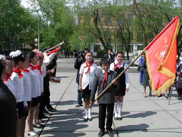 Пламенную речь произнес аксакал партийно-политической работы Григорий Чоодуевич, который поздравил ребят с вступлением в пионеры. Он напомнил детям о незаслуженно забытых хороших традициях советских времен, о возрождении пионерского движения в республике, особенно в кожуунах, призывал их быть честными, хорошими учениками и любить свою Родину. Выяснилось, что сегодня в Туве вновь созданы пионерские организации в Кызыл-Мажалыкской средней школе №2 (280 пионеров), в Солчурской и Саглынской средних школах.