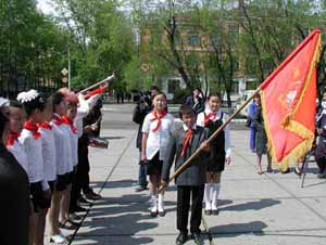 Присутствовали все атрибуты того славного времени: пионерский горн, барабан, красные знамена и галстуки. И действующие лица были до боли знакомы: все тот же первый секретарь Г.Ширшин, секретарь по идеологии А.Канзай, горкомовский секретарь С.Григорьев и другие. Но дети были все-таки другие и да и время тоже: как-никак на дворе ХХI век и поколение выросло на сникерсах и памперсах, затвердило с пеленок наизусть рекламные тексты, а не пионерские речевки.