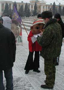 Поначалу показалось, что будет «море» острых вопросов земляку. Но оказалось, что все, кому доставался вожделенный переносной микрофон, почему-то стали... объясняться в любви и уважении к своему земляку и пытались дарить какие-то конверты и нехитрые подарки. С.Шойгу понимающе улыбался и пытался утихомирить пресмыкавшихся чиновников, которые явно по заранее задуманному плану устроили весь этот балаган. Правда, нашлись и такие, кто пытался действительно задать какие-то вопросы. Например, руководитель Комитета по образованию столицы Галина Гостева задала актуальный вопрос о реальном финансовом обеспечении повышения зарплаты бюджетникам, в особенности учителям. Высокий гость как-то неубедительно ответил на вопрос в том смысле, что он не вмешивается в хозяйственно-финансовые дела, но пообещал взять этот вопрос под свой контроль. То ли он действительно не понимал, о чем речь, то ли такая установка партии – валять дурочку, разобрать было невозможно. Избиратель из родной деревни Героя – Чадана – задал совсем уж провокационный вопрос об административной границе между Тувой и Красноярским краем, предъявив по сути дела территориальные претензии к соседнему субъекту Федерации. На что лидер проправительственной партии дипломатично ответил в том духе, что не надо заниматься перекройкой границы в своем Отечестве, и если товарищ желает переехать на территорию Красноярского края, на родину своих отцов, дедов и прадедов, то «пожалуйста, милости просим». Вопрос был исчерпан.