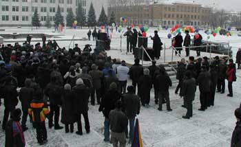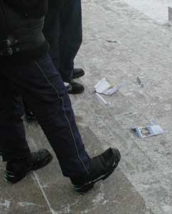 Однако у фотографа-аутсайдера оказались и свои плюсы: удалось заснять приезд С.Шойгу в театр и понаблюдать за реакцией слушателей перед театром. А она была удивительна: как только закончился концерт, услужливо организованный на Театральной площади, и началась трансляция из зала, народ... валом повалил с площади, ничуть не интересуясь речами ораторов и выступлением своего знаменитого земляка. И это несмотря на то, что активисты «Единой России» (некоторые были в костюмах героев сказок) вовсю раздавали листовки с призывом голосовать за эту партию. Эти агитки позднее обнаруживались на тротуарах в затоптанном виде. К концу этого действа на площади осталось не более 40 человек, половину из которых составляли милиционеры.