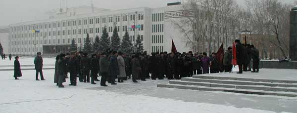 Если в предыдущие дни после необычно теплого октября погода напомнила, что у нас все-таки Сибирь-матушка, то 7 ноября день выдался теплым. Коммунистам «пофартило». Этот день совпал и с началом агитационной кампании по выборам в Госдуму, которая, если верить выступлениям ораторов, предстоит быть жаркой. Поэтому все это действо напоминало предвыборный митинг. Присутствовали в основном пожилые люди в количестве до четырех десятков, которые, ожидая открытия митинга, предались ностальгическим воспоминаниям: как все было хорошо и прекрасно в коммунистические времена...