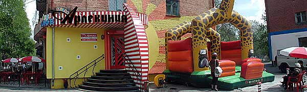 «Мне особо хочется отметить весомый вклад в преображение города частных предпринимателей, сумевших создать свой устойчивый бизнес и развить его до масштабных пределов», – вот так в июле прошлого года, захлёбываясь от умиления и не жалея ярких красок, некая Ольга Есекова расписывала деятельность Владимира Елсукова и Леонида Сафронова в газете городской администрации «Вести Кызыла». Особенно много телячьих восторгов было по поводу «семейного кафе «Арлекиния» и «небольшого детского развлечения» – надувного жирафа, который притулился своей задней частью к дому №99 по ул.Кочетова.