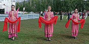 Когда же дошел черед до вручения наград, то выяснилось, что среди награжденных – сплошь работники кожууна. То же самое произошло, когда выступили министры. Они, видимо, просто не понимают разницы между городом и кожууном. Даже зам. министра финансов М.Нурсат, по долгу службы обязанная это понимать, ни словом не обмолвилась о Туране и его бюджете. Насмешил и министр С.Барыбин, «подаривший» туранцам федеральную трассу с мостами и подъездными путями. Жалко выглядел министр образования П.Морозов, попытавшийся зачитать поздравление по-тувински. Как оказалось, ему не хватило 30 лет педагогической работы в районе и 10 лет работы в правительстве, для того чтобы по бумажке прочитать на тувинском языке две строчки. Министры вообще поражали: подарки дарили не городу, а своим чиновникам в Пий-Хемском кожууне.