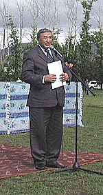 Затем на устроенную трибуну взгромоздился мэр Турана В.Титов и по бумажке зачитал славную историю города, когда-то побывавшим в качестве столицы Тувы. Затем пришел черед Главы республики. Забираться на трибуну по лесенке ему, видимо, было не под силу, и он выступил стоя на ковре.