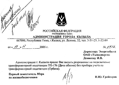 Началось всё с того, что энергетики потребовали с Администрации г.Кызыла заключения договоров на такие объекты, установления учета и соблюдения правил эксплуатации подстанций. Мэр Кызыла Д.Донгак, мнящий себя серьёзным менеджером в городском хозяйстве, регулярно обещал навести порядок и молил «пока» не отключать незаконных потребителей. Но ничего так и не сделал за прошедшее лето.