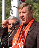 Я представляю фракцию КПРФ в ГД и уполномочен передать вам большой горячий привет от председателя партии Г.А. Зюганова. И от себя лично я привез вам поддержку от нас, от сибиряков, от новосибирцев.