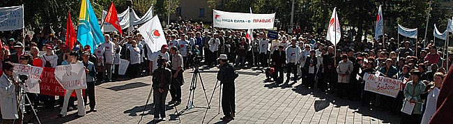 Вначале было как-то немножко нервно. Старенький грузовик, приспособленный под импровизированную трибуну, все не хотел становиться как надо. Надо было «по-диагонали», а водитель никак не мог понять, что за «диагональ» такая от него требуется. Микрофоны «фонили», колонки хрипели, что-то забыли, срочно побежали... Обычная предмитинговая суета. В конце концов все наладилось. Но в воздухе то и дело повисал один и тот же тревожный вопрос: