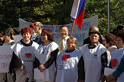 Так получилось, что на площади представители Партии Жизни с белыми флагами выстроились напротив коммунистов с их красной символикой. Кто-то из молодежи пошутил: «Опять красные против белых!» Ему тут же ответили: «Нет, это красные и белые против г...» Грубоватая шутка, конечно. Ну, уж извините, вырвалось у человека. А вообще-то, как надо всех «достать», чтобы шесть таких идеологически разных партий объединились против одной?..