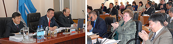 Такого стремительного заседания палата еще не знала. Меньше чем за час были проголосованы все 57 вопросов. Бюджет был принят за пять минут. Царили полное согласие и взаимные реверансы... Примерно так проходило последнее сессионное заседание Законодательной палаты Великого Хурала РТ. Но не все так просто: за кадром остались ожесточенные споры до 12 ночи, ругань и вынужденное примирение. Внешние солидность и дружелюбие депутатов, еще недавно отчаянно конфликтовавших, зиждились не столько на качестве проработки бюджета Минфином и Минэкономики правительства, сколько на соглашении и взаимном доверии Главы правительства и спикера палаты. Хотя почвы для споров было не меньше, чем при принятии бюджетов прошлых лет.